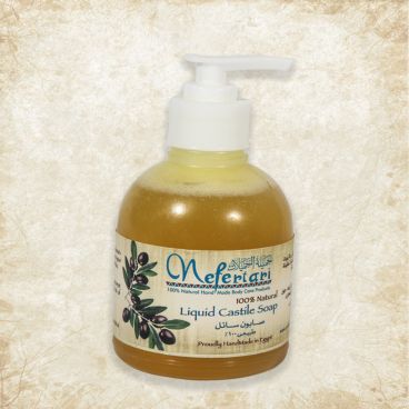 صابون سائل نفرتارى مصنوع من زيت الزيتون البكر الخام غني بالزيوت المغذية للبشرة وله رغوة غنيه